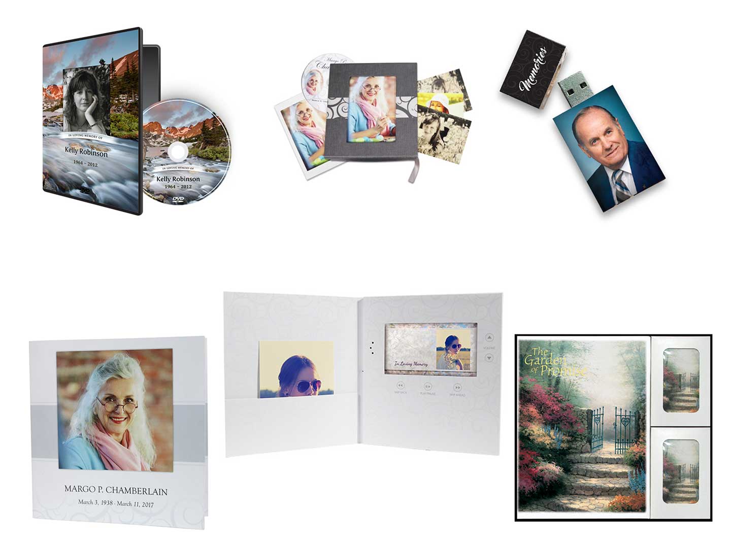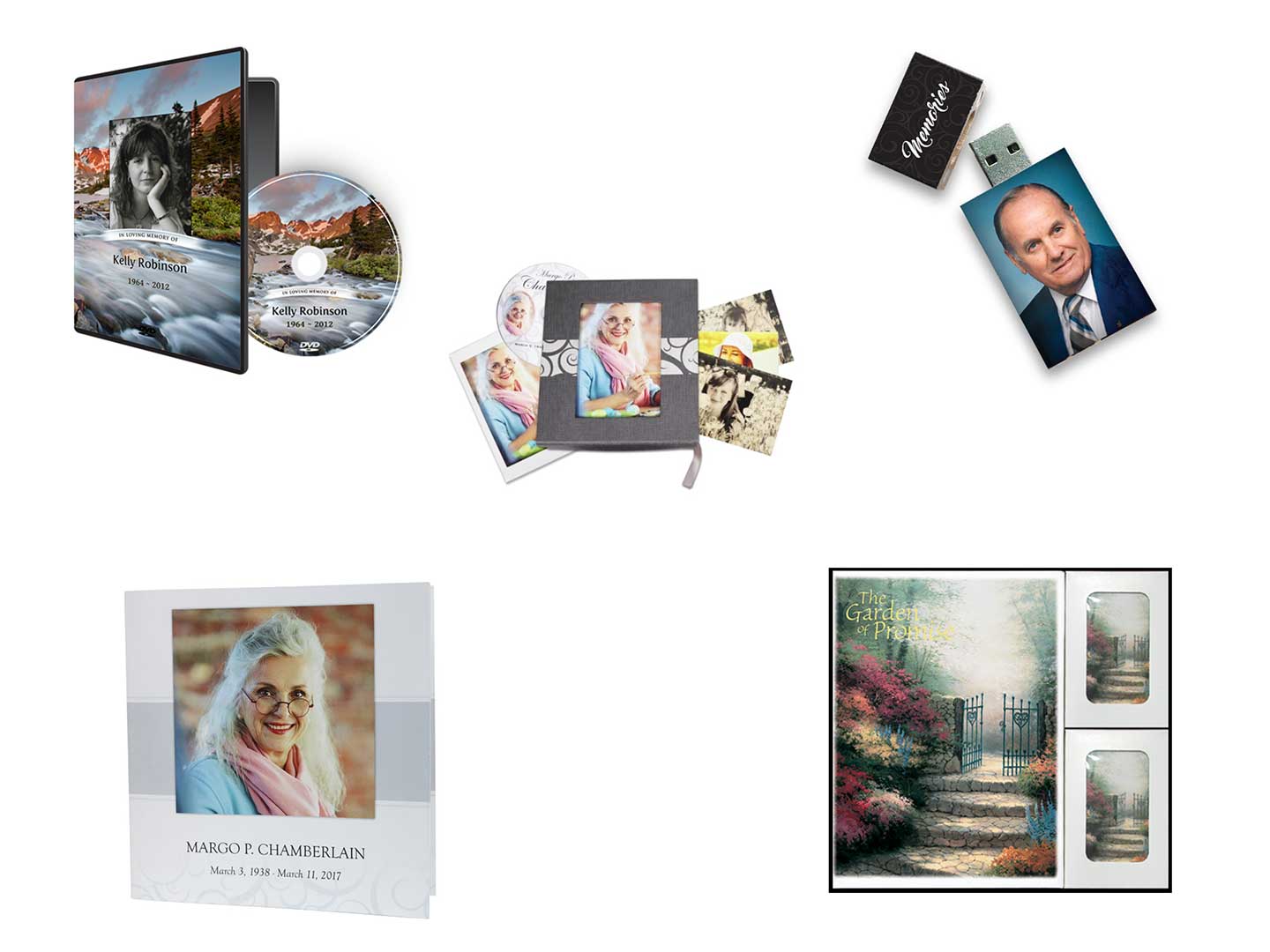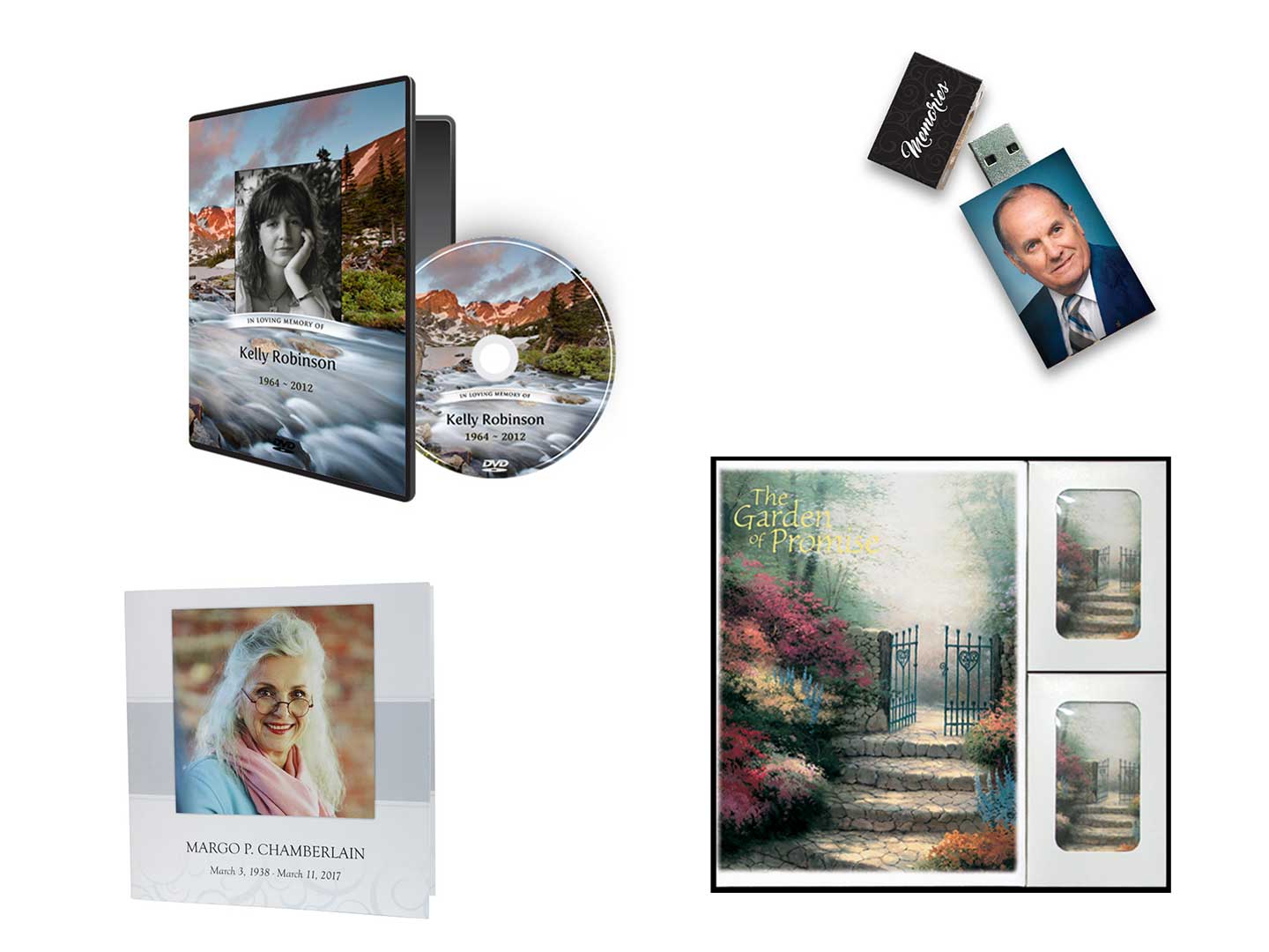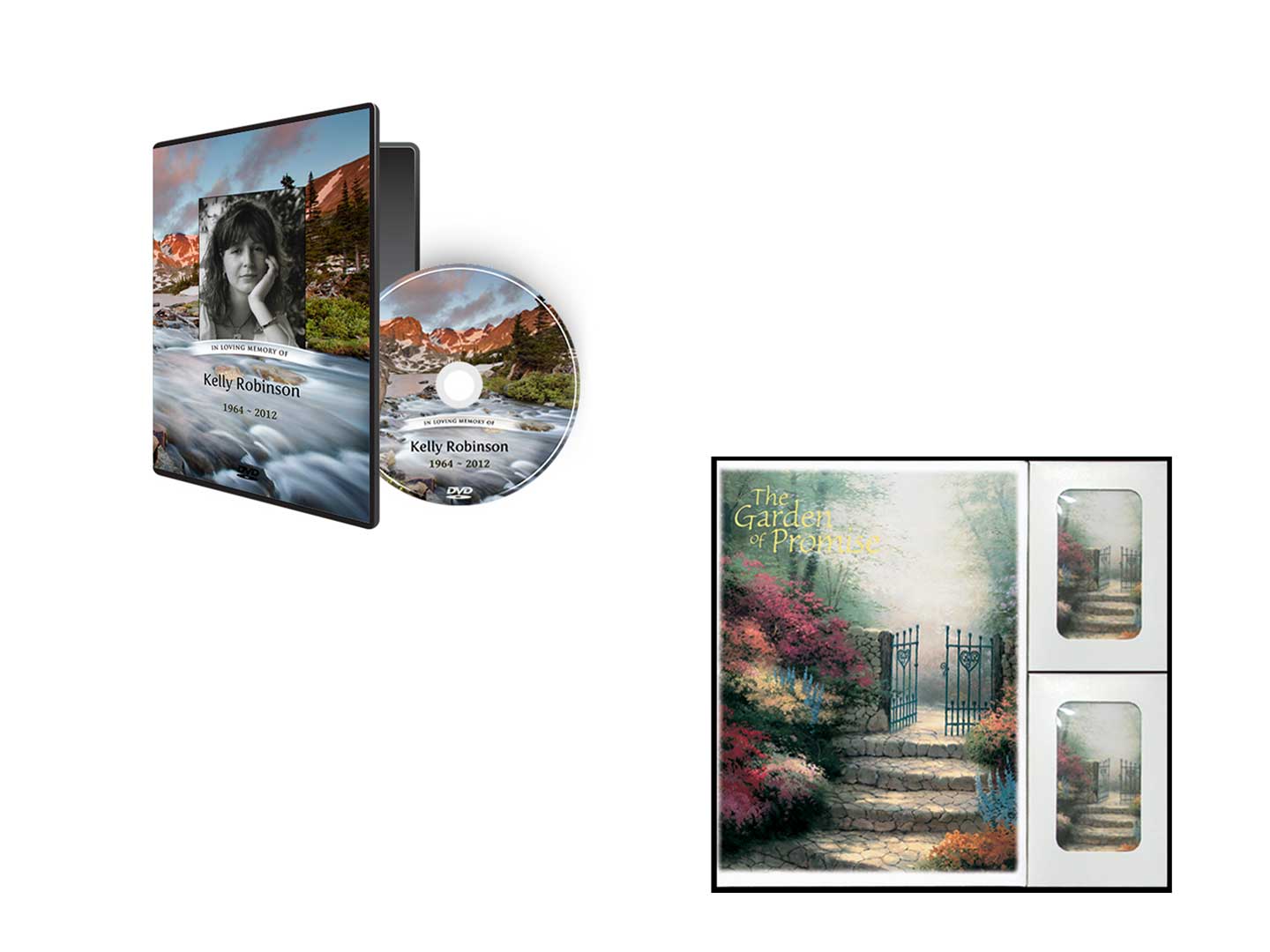Includes Register Book, Memorial Cards, DVD, Bookshelf Box DVD Set, & Choice of Softcover Photo Book or Memory Drive HD.